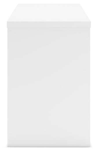 Create the modern workspace of your dreams. This sturdy home office desk offers a minimal design with maximum style, combining ultra-clean lines and an easy-elegant solid white finish with a hardware-less aesthetic. A spacious drawer with ball-bearing glides organizes the business at hand.