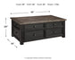 Shabby chic with a hint of down-home country, this lift-top coffee table is all the talk of today’s design world. Wood grain shows through the weathered gray-brown top in all of its earthy pleasure. The framed drawers, adorned with lovely traditional hardware, make it easy for you to store your belongings in style. And the table's lift top transforms your space into a workstation without a hitch.